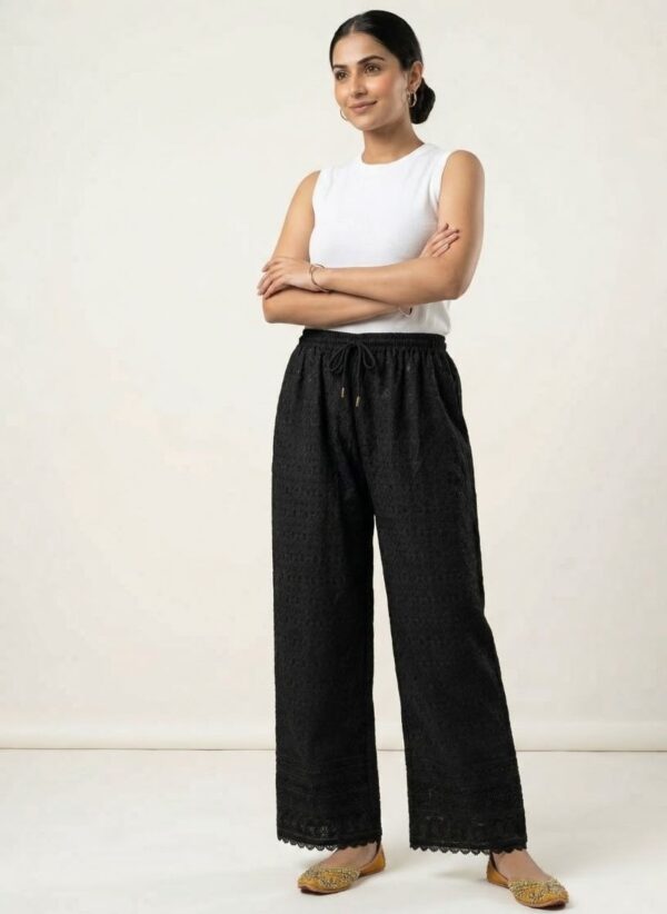 EMBROIDERED LUCKNOWI CHIKAN PALAZZO PANTS