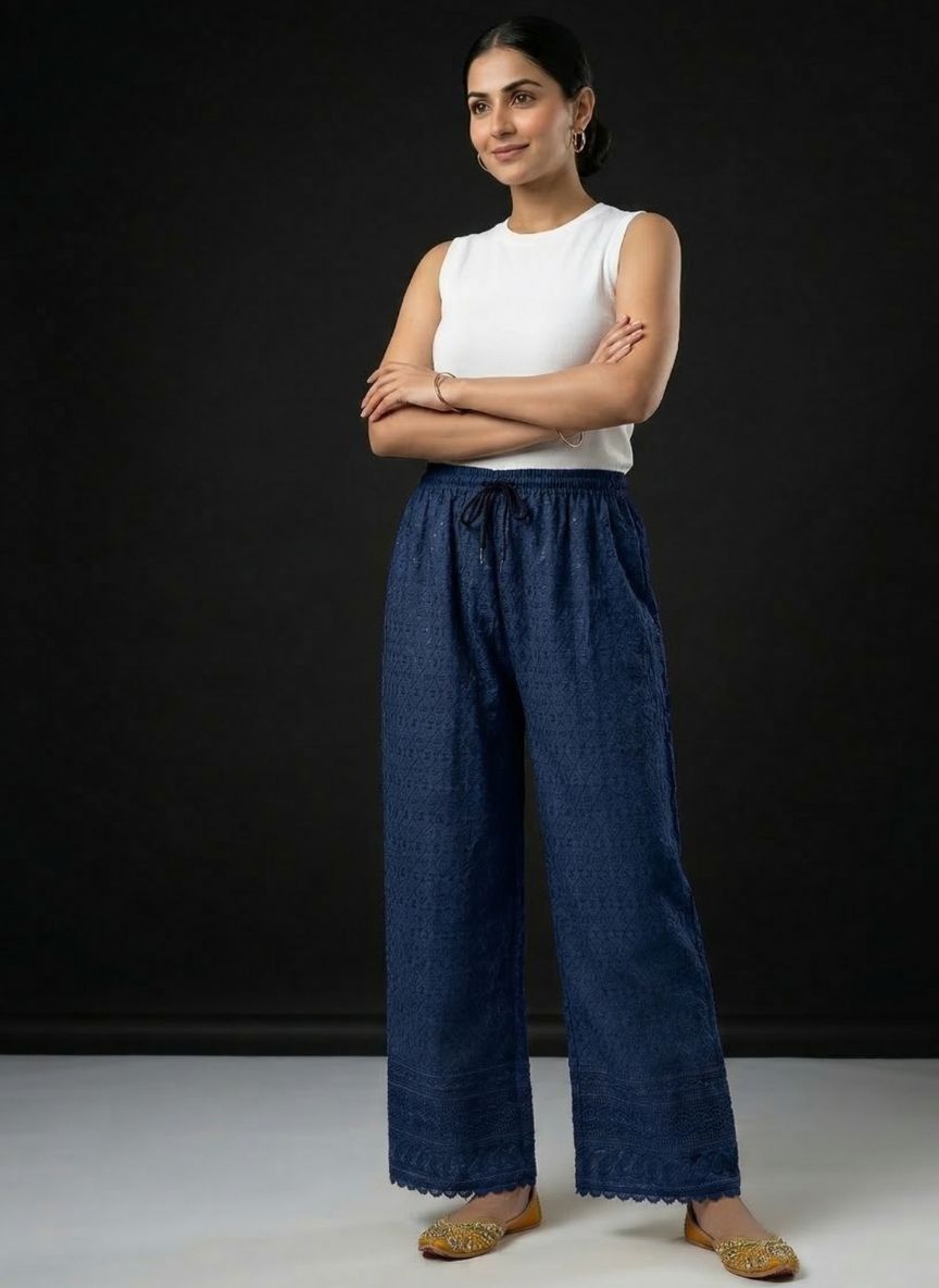 EMBROIDERED CHIKAN PALAZZO PANTS