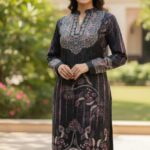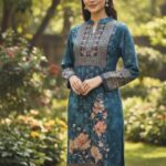 Print Motif: Detailed traditional floral and geometric patterns reminiscent of classic Indian craftsmanship, rendered in sophisticated shades.