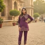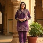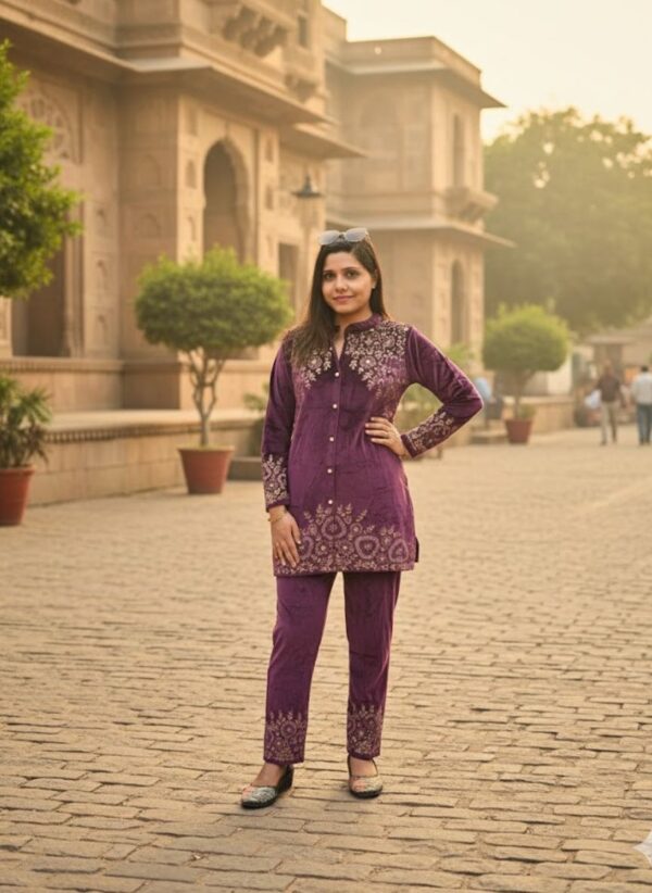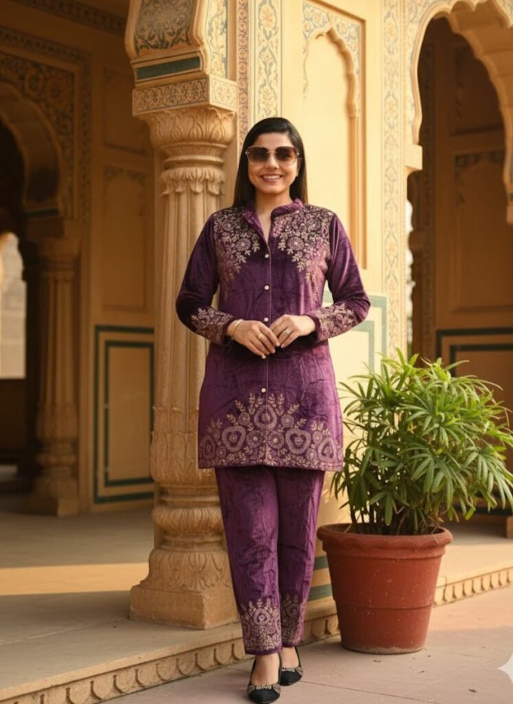 & Free ShippingJodhpuri Blue Velvet Co-ord Set