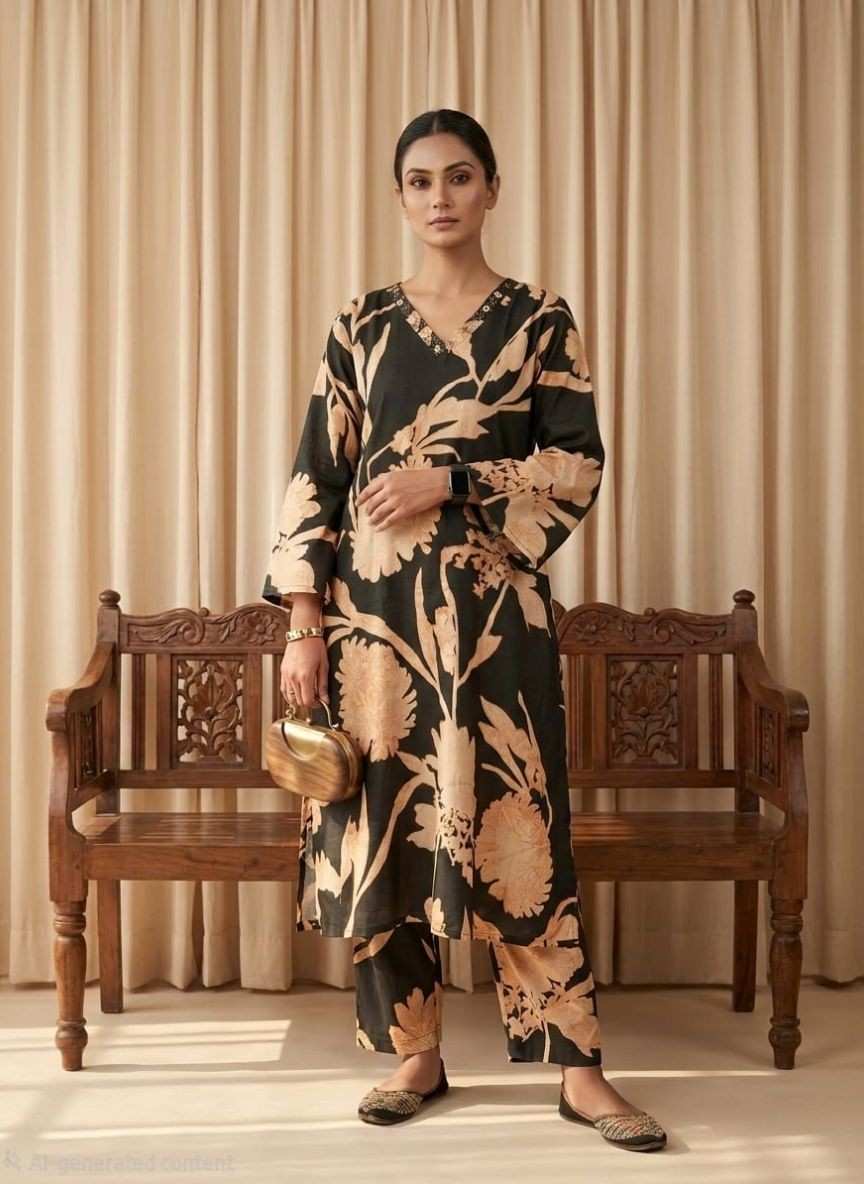 A straight-cut, longline, sophisticated, contemporary ethnic ensemble that blends traditional motifs with a modern, relaxed silhouette. It’s perfect for semi-formal gatherings, festive lunches, or elevated everyday wear. Effortlessly chic. This co-ord set removes the guesswork from styling.